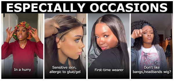 Some people are allergic to wig glue or certain wig tapes due to skin problems, but they still need to wear wigs for hobbies or other reasons, and glueless lace wigs can help solve this question. Applying the adhesive on your scalp for too long can irritate your scalp and hair follicles. Glueless wigs are suitable for women with sensitive skin.